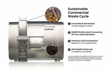 The SUNEFUN Commercial Bio-Composter processes high-volume food scraps efficiently—cutting disposal costs, eliminating odors, and elevating your sustainability targets without disrupting your operations.