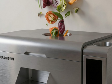 Decomposes 90% of food waste in 24hrs, handling most food and compostable items.